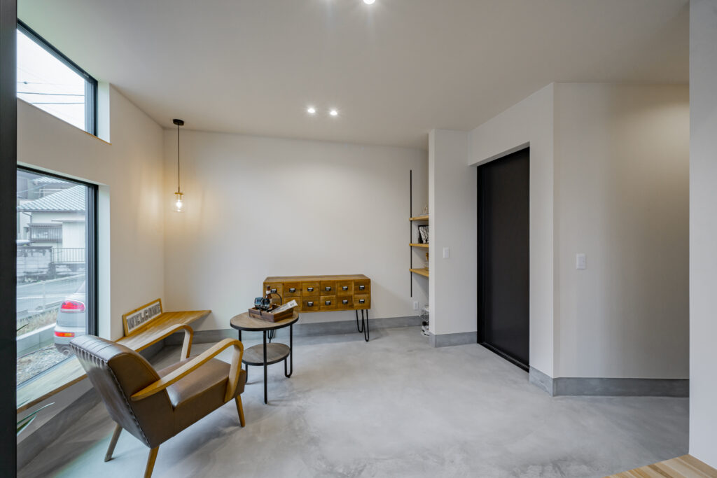 まるでアウトドアリビングな土間洋室、応接間・自転車置き場・・・使い方は無限大