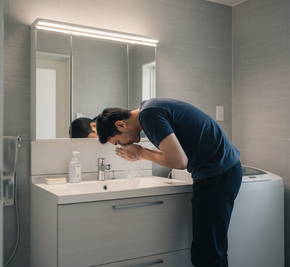 毎朝顔を洗うたびに「なんか腰が重い…」「地味に疲れる…」それ、洗面台の高さが原因かもしれません。