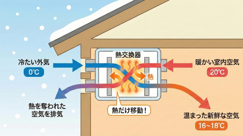 これなら、換気しているのに寒くならない、暖房効率が落ちにくい、部屋ごとの温度差が出にくいという状態を作れます。