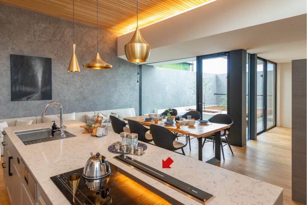 アイランドキッチンなら油ハネ対策を前提にするなど、