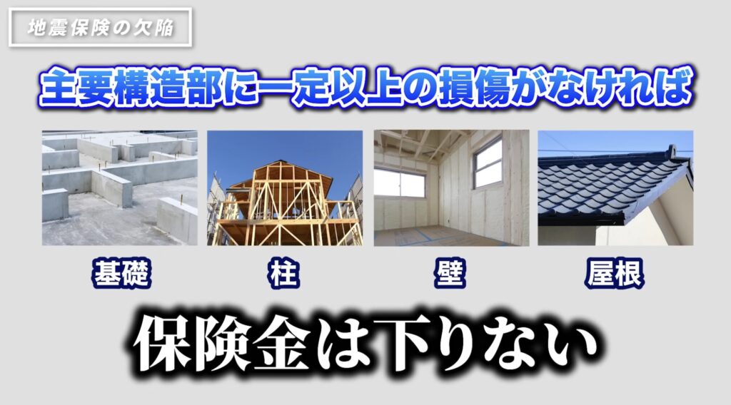 地震保険の支払い可否は、「主要構造部の損害度合い」で判断されます。